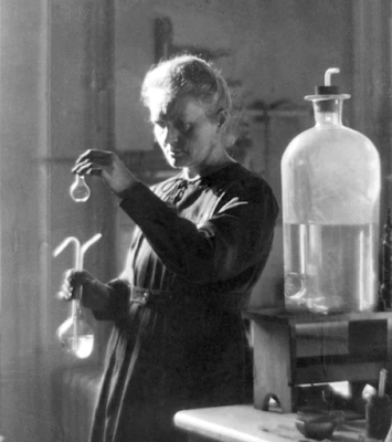 | Marie Curie working in her lab. Credit: Radium Institute. Image Courtesy of AIP Emilio Segrè Visual Archives. |